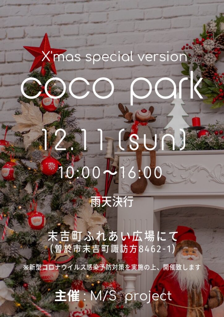 12月11日(日)ふれあい広場にて開催される”coco park”に出店します。