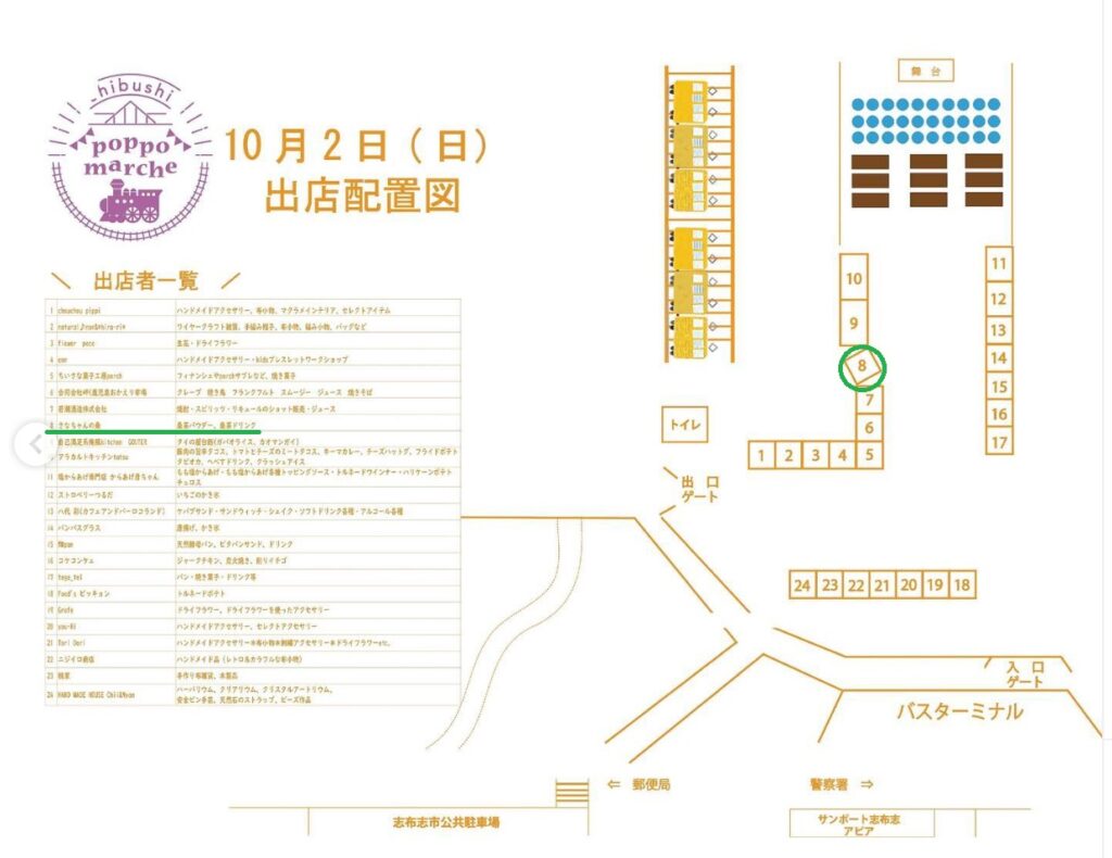10月2日(日)志布志イベント広場で開催される「ぽっぽマルシェ」に出店します。